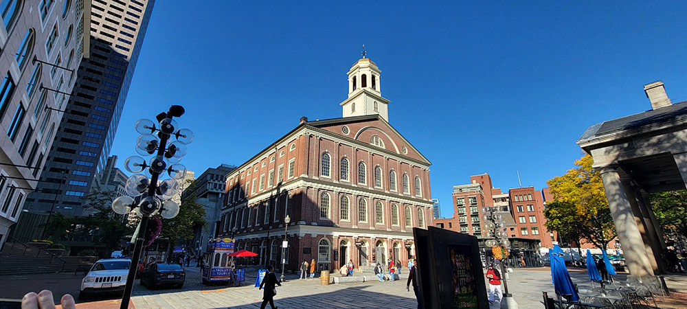 Originally built in 1740, it was a market that also doubled as a meeting place public assemblies. Behind that is another building, the Quincy Market.