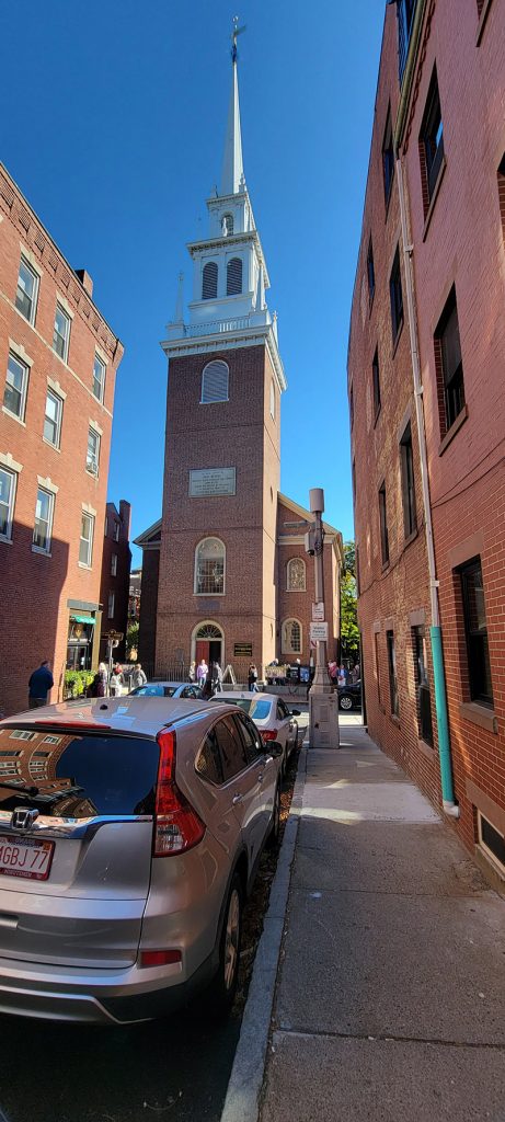 Then the Old North Church, where the lamps were hung after Paul Revere’s ride to signify the arrival of the British troops.