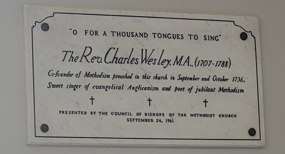 Inside is a plaque commemorating Charles Wesley, founder of Methodism and writer of “O For a Thousand Tongues to Sing”, who preached in that church.