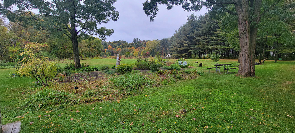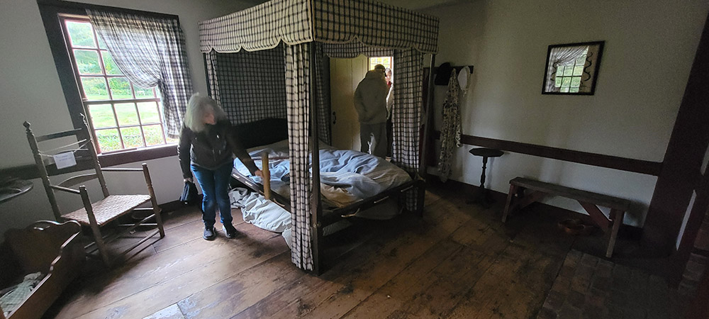 Knowing we were still too early for the hotel, we drove to the Ethan Allen homestead and toured the grounds and tiny cabin that made up his home.