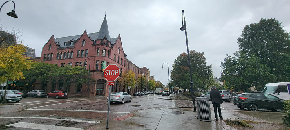 was excellent, but we got there too early to get a room, so we parked and walked around Burlington. However, it was raining, so it limited our options a bit. Nonetheless, downtown Burlington is sort of a hip little college town.