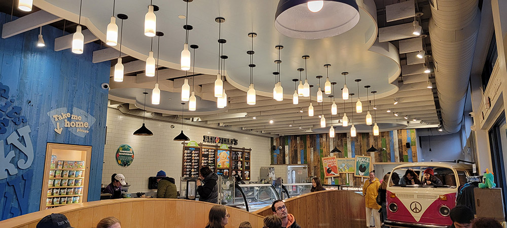 Vermont foods to try were anything with maple, Ben and Jerry’s ice cream, gravy fries (poutine), and fiddleheads, the top of a fern. We did sample a small Ben and Jerry’s ice cream in the Church street marketplace,