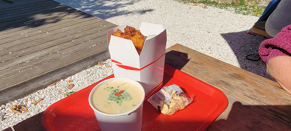 Drove back to Rhode Island to eat at Dune Brothers shack for the traditional clam cakes with clam chowder.