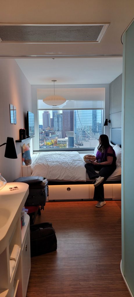 I knew beforehand that Boston had a decent metro system, so we decided to ditch the car when we got into the city. We drove straight to Boston Logan, dropped off the car, and then there is a shuttle that takes you from the rental car area to the metro station. We got to the hotel, citizenM, around 2p and were able to get in straight away. The room was tiny, but very stylish.