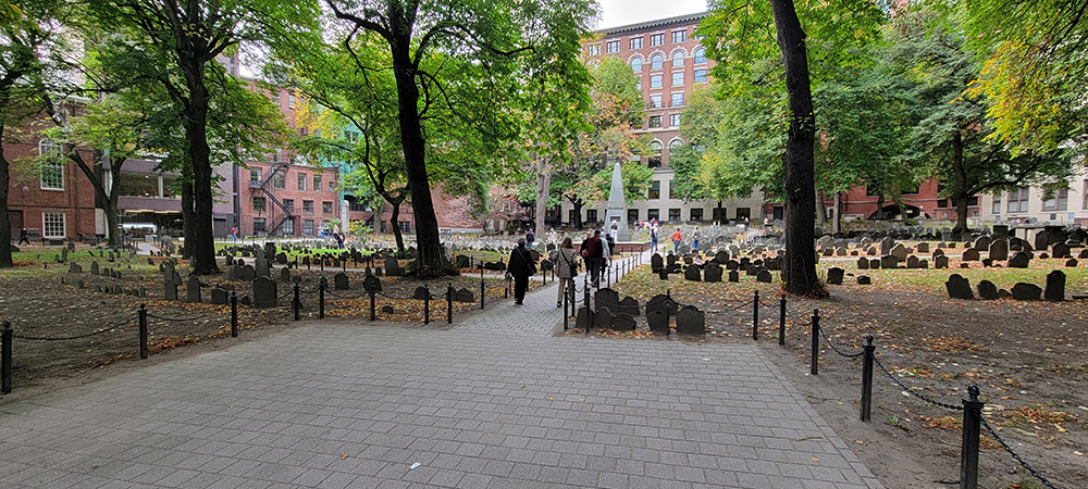 Granary Burying Ground- this cemetery was founded in 1660 and contains the graves of Paul Revere, Samuel Adams, John Hancock, and Robert Paine.